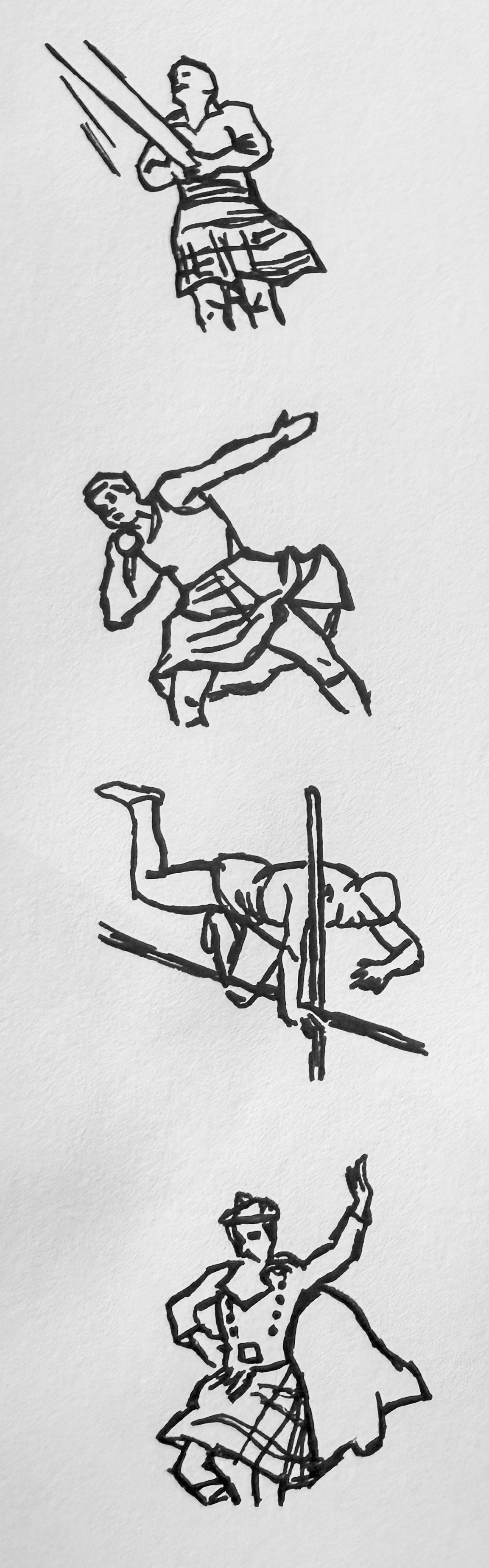 The book did not truly take shape until I found the official Braemar Gathering's archive of game results, news snippets, and old photographs. The photographs inspired me to lean towards a collage aesthetic, which is something that I have never tried before. I utilized a lot of white space to encourage the viewer to focus on the imagery that went along with the text. To tie everything together, I drew Braemar Gathering and Scottish iconography to scan into Adobe Illustrator, vectorized the drawings, and placed them into the booklet. The hand-drawn texture is my personal favorite "final touch."